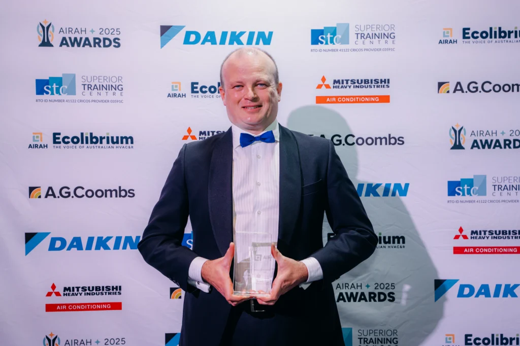 Brett Fairweather, F.AIRAH, has been recognised with the Excellence in Knowledge Building award at the 2025 AIRAH National Awards for his outstanding contribution to training, education and professional development across the HVAC&R industry.