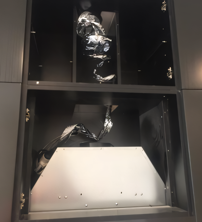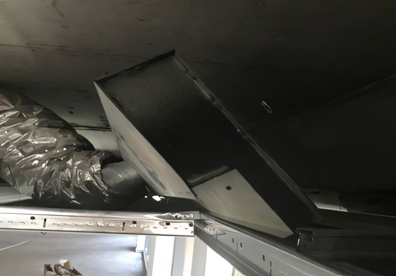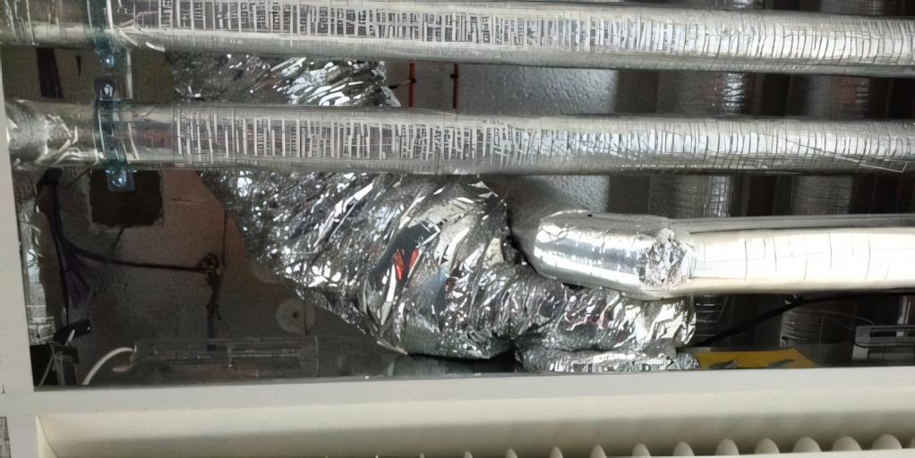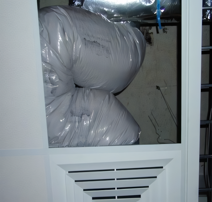 No, this isn’t some abstract artwork on display at a high-end museum; it’s a completed deflated kitchen exhaust duct. “The flexible duct must have had a tear in it at the time of installation,” William says. “This allowed the airflow to rip and completely deflate the flexible ducting by pulling itself apart.”