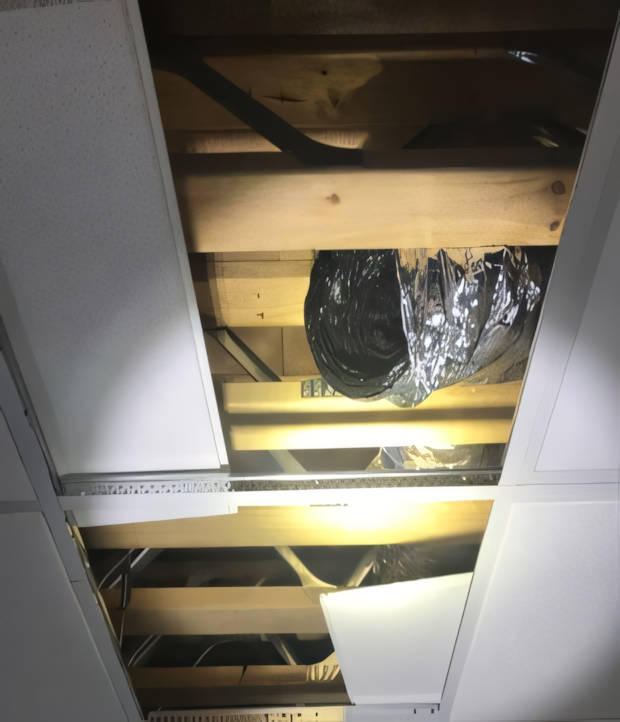 It seems that sometimes, kit isn’t event connected properly during installation. In this case, a light air boot fell over in the ceiling cavity, causing all the air to flow into the ceiling and not into the supposedly air conditioned room.