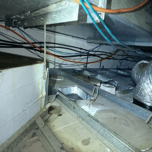“Aluminium BBQ trays that are purchased at local supermarkets are not a satisfactory way to manage leaking ductwork,” say the techs from Shepherd Filters who encountered this nightmare.